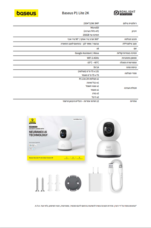 • אחריות: אחריות לשנה - רונלייט היבואן הרשמי