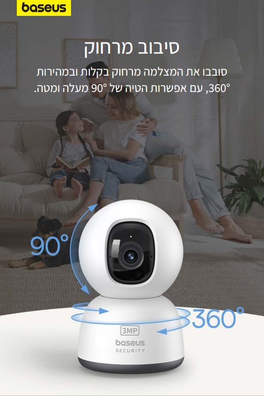 • סיבוב מצלמה 360° סביב ציר אופקי | 90° ציר אנכי