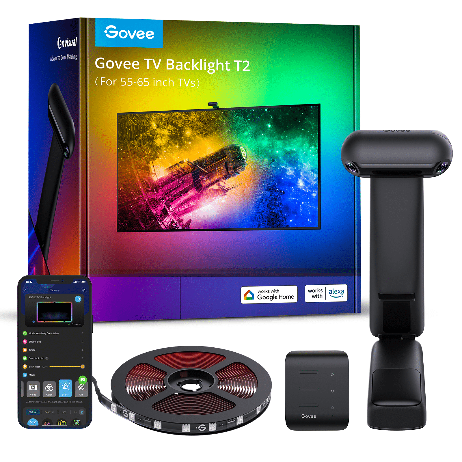 דגם: H605C תאורת אווירה עם מצלמות למסכי 55-65" מבית Govee המאפשרת עיצוב והתאמה אישית של הסלון הביתי המשתנה בהתאם לצפייה בטלוויזיה. העצימו את תצוגת המסך שלכם עם התאורה האחורית החדשנית של Govee המותאמת לכל סוגי הטלוויזיות, עם מצלמה כפולה וטכנולוגיית Govee Envisual. חוו את האפקטים המרהיבים ביותר עם תאורה עוצמתית בזמן שאתם צופים בסרטים ובתוכניות הטלוויזיה האהובות עליכם.