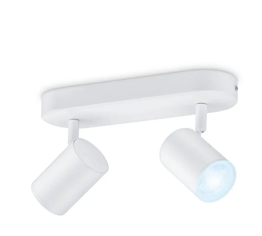 גוף תאורה חכם עם שני ראשי ספוט מתכווננים וחיבור Wi-Fi/Bluetooth המסתנכרן עם אפליקצייה ייעודית.