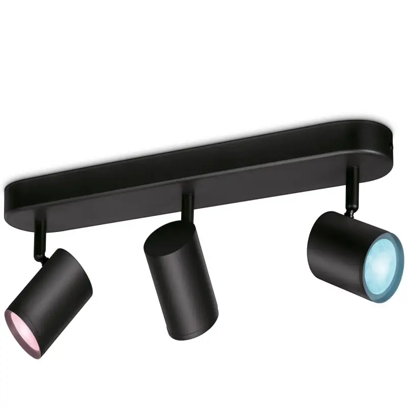 גוף תאורה חכם עם שלושה ראשי ספוט מתכווננים וחיבור Wi-Fi/Bluetooth המסתנכרן עם אפליקצייה ייעודית.