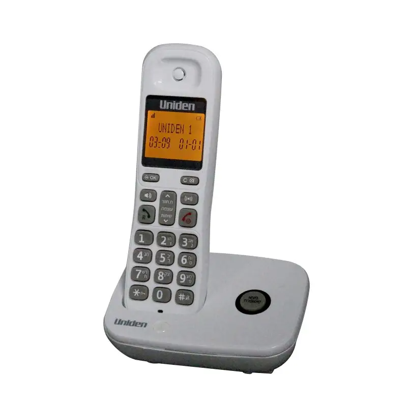 טלפון אלחוטי איכותי מבית Uniden, עם צג גדול מואר ומקשים גדולים מוארים- מתאים מאוד לבני הגיל השלישי. המכשיר כולל ספר טלפונים לעד 70 רשומות, מגוון אפשרויות צלצול לבחירה, זיהוי מתקשר מסך LCD עם תאורה, איכות שיחה גבוהה צלולה ונקייה.