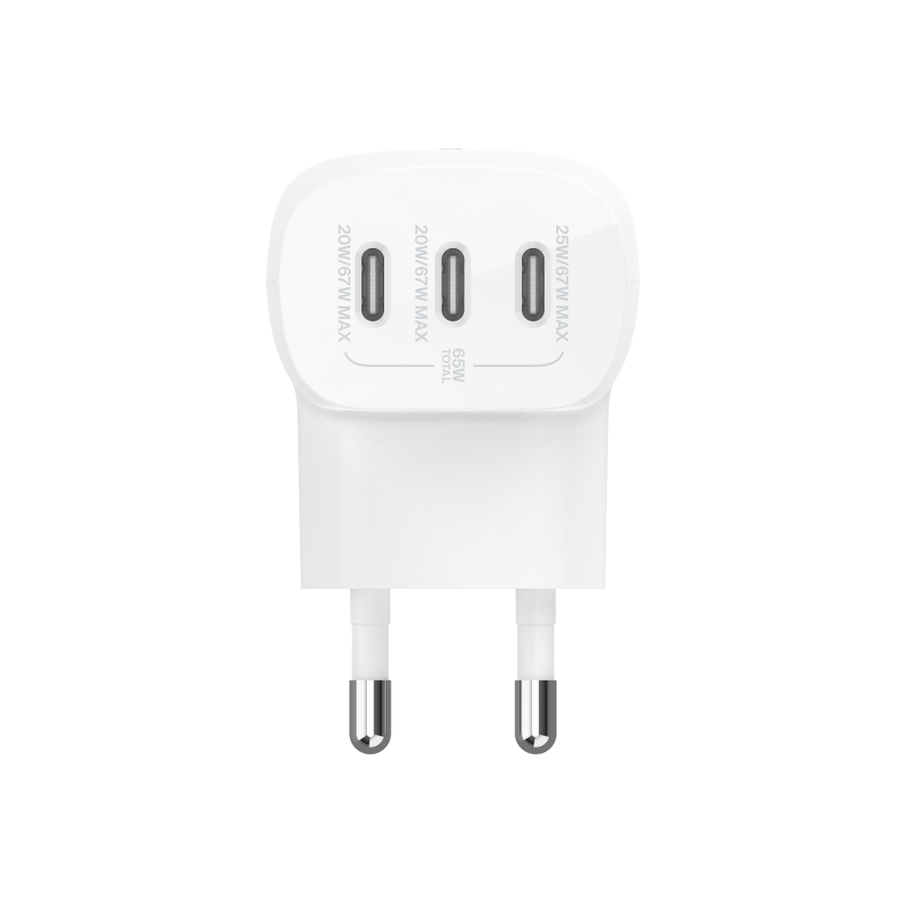 מטען קיר 3 יציאות Belkin BoostCharge USB-C PPS 67W לבן