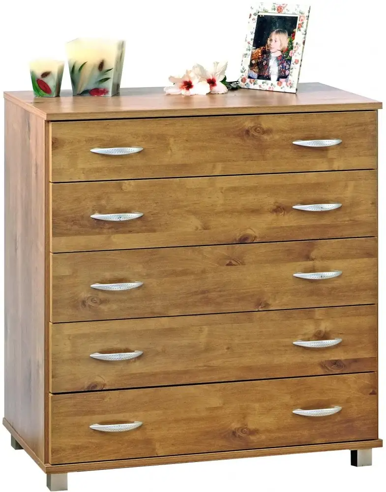 שידת 5 מגירות מהודרת. שידה שימושית לאחסון בגדים וחפצי בית שונים.